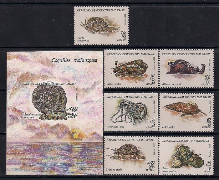 Мадагаскар 1993 год. Моллюски и каракатицы. 7 марок и блок