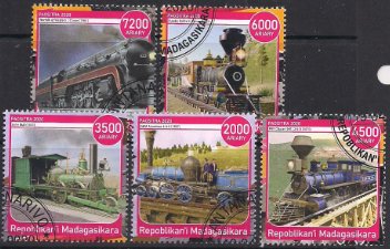 Мадагаскар 2010 год. Паровозы. 5 гашеных марок