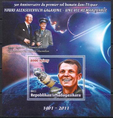 Мадагаскар 2011 год. 50 лет полету Ю. Гагарина (4). Блок
