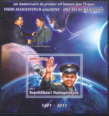 Мадагаскар 2011 год. 50 лет полету Ю. Гагарина. Блок