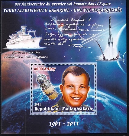 Мадагаскар 2011 год. Ю. Гагарин, 50-летие первого полета человека в космос 2, блок