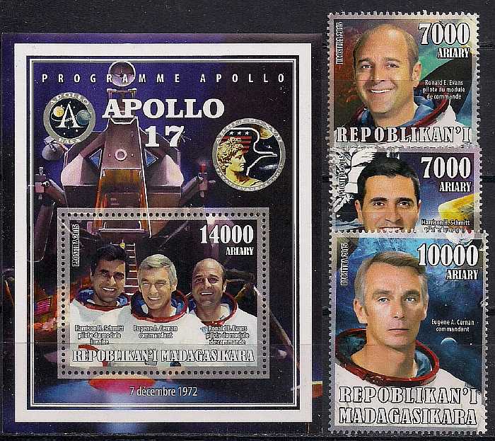 Мадагаскар 2015 год. Астронавты. 3 марки + блок Сувенирный выпуск