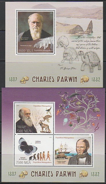 Мадагаскар 2016 год. Английский натуралист Чарльз Дарвин, малый лист + блок.