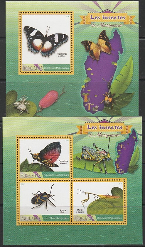 Мадагаскар 2016 год. Бабочки и насекомые, малый лист + блок.
