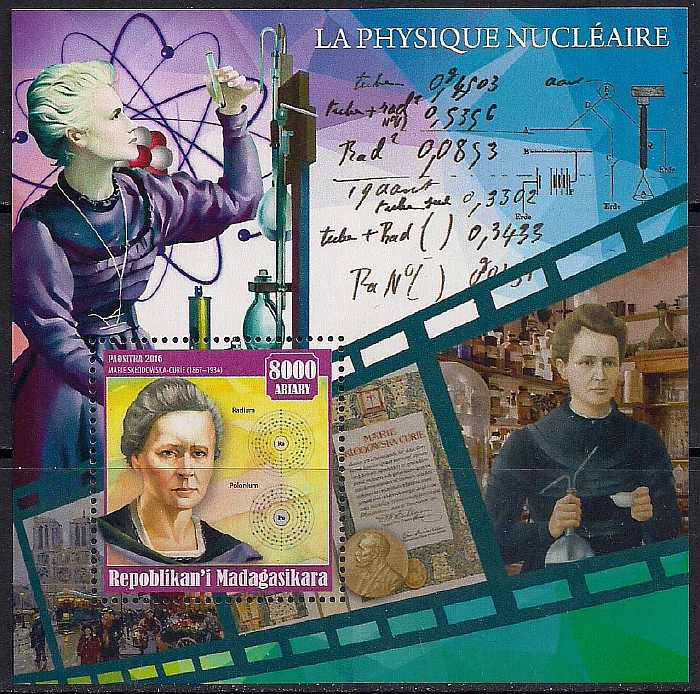 Мадагаскар 2016 год. Физик Мария Кюри. Блок