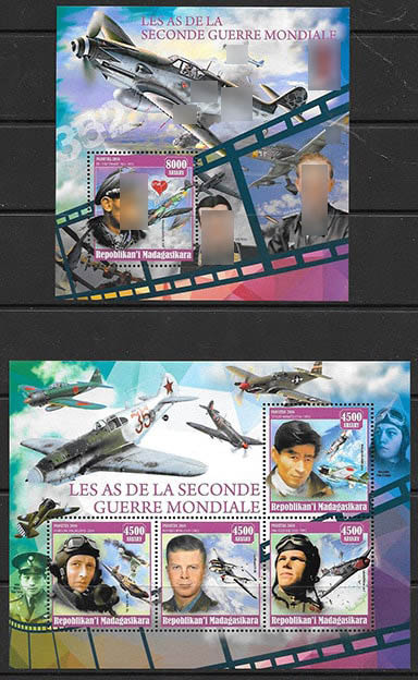 Мадагаскар 2016 год. Летчики Второй Мировой войны, блок и малый лист