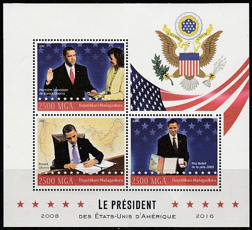 Мадагаскар 2016 год. Президент США Барак Обама, малый лист.