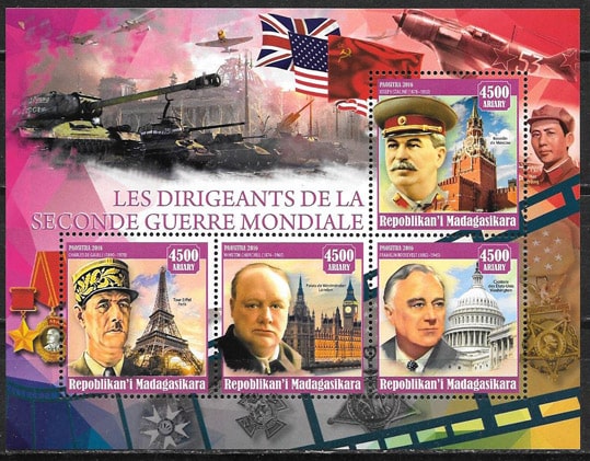 Мадагаскар 2016 год, Военачальники. Сталин, Рузвельт, Черчилль, Шарль-де-Голь, малый лист