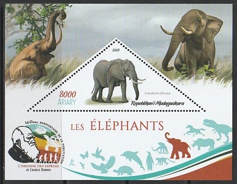 Мадагаскар 2019 год. Слоны, блок (III) Сувенирный выпуск.