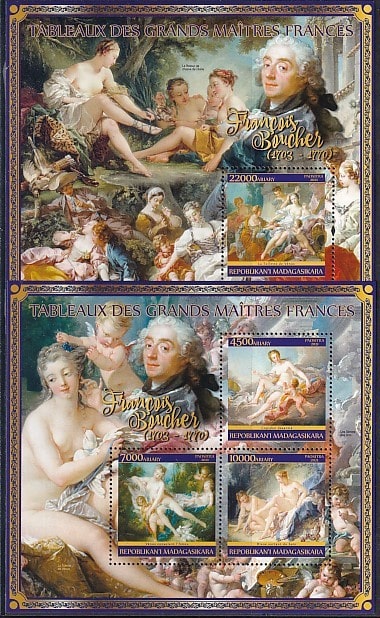 Мадагаскар 2021 год. Великие мастера Франции: Франсуа Буше. Живопись, малый лист + блок