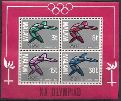 Малави 1972 год. Летние Олимпийские игры в Мюнхене. Блок