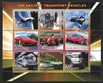 Малави 2008 год. Космос. Автомобили. Поезда, малый лист