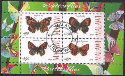 Малави 2009 год. Бабочки. Гашеный малый лист Сувенирный выпуск