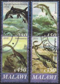 Малави 2010 год. Ихтиозавры. 4 гашеные марки
