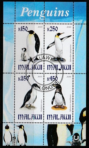 Малави 2010 год. Пингвины, малый лист (гашёный) Сувенирный выпуск.