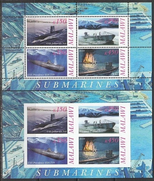 Малави 2010 год. Подводный флот, 2 малых листа (1 зубц. + 1 б/зубц.)