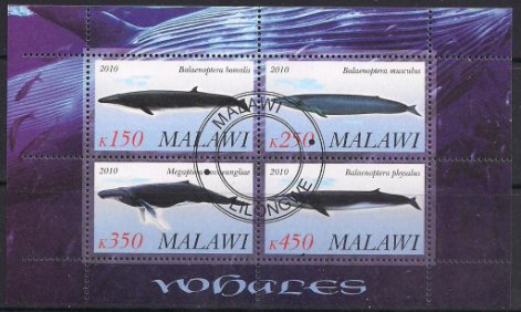 Малави 2010 год. Синий кит. Гашеный малый лист
