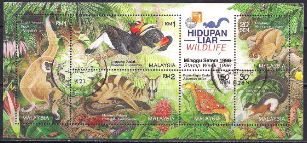 Малайзия 1996 год. Неделя почтовой марки. Фауна. Блок (гашеный)