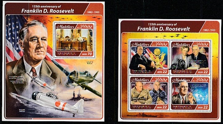 Мальдивы 2017 год. Президент США Франклин Рузвельт, малый лист + блок.