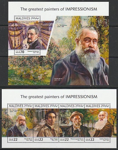 Мальдивы 2018 год. Импрессионисты. Художники. Живопись, малый лист + блок.