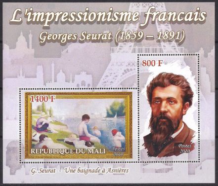 Мали 2010 год. Жорж Сера. Лист Сувенирный выпуск