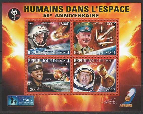 Мали 2011 год. 50 лет первому полёту человека в космос, малый лист (II)