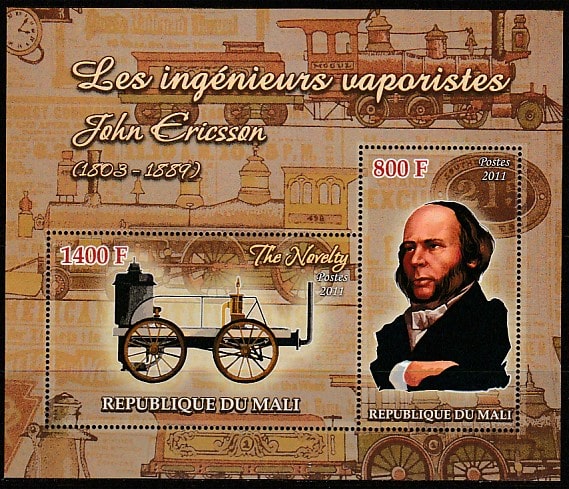 Мали 2011 год. История ж/д транспорта. Джон Эрикссон, блок. Сувенирный выпуск.