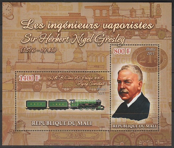 Мали 2011 год. История ж/д транспорта. Найджел Грезли, блок. Сувенирный выпуск.