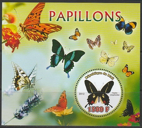 Мали 2012 год. Бабочки, блок. Сувенирный выпуск.