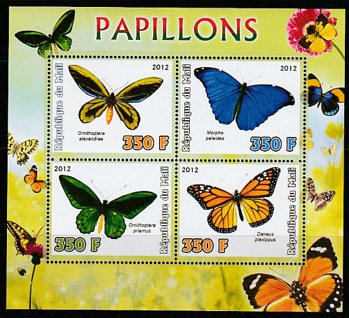 Мали 2012 год. Бабочки, малый лист.