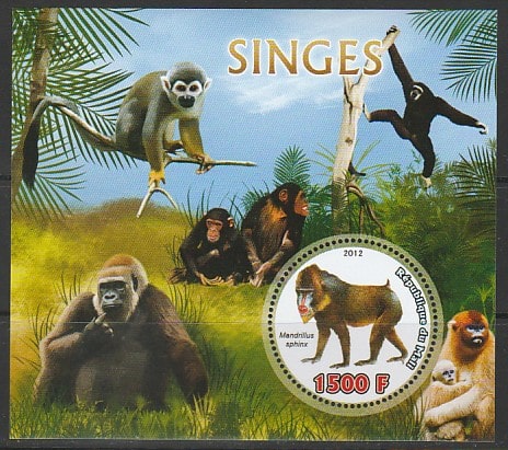 Мали 2012 год. Обезьяны, блок. Сувенирный выпуск.