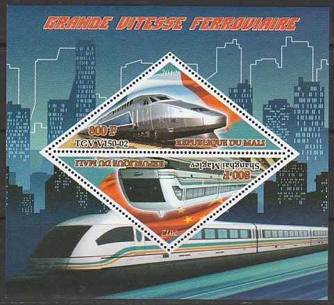 Мали 2012 год. Высокоскоростные поезда, блок.