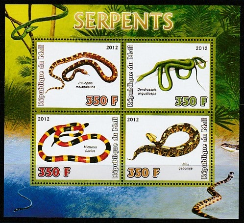 Мали 2012 год. Змеи, малый лист. Сувенирный выпуск.