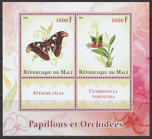 Мали 2014 год. Бабочка и орхидея, блок.