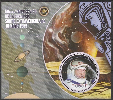Мали 2015 год. 50 лет первому выходу человека в открытый космос. Космонавт А.А. Леонов, блок.