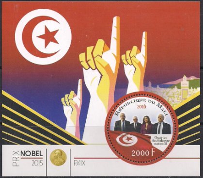 Мали 2015 год. Квартет Национального Диалога в Тунисе. Блок Сувенирный выпуск