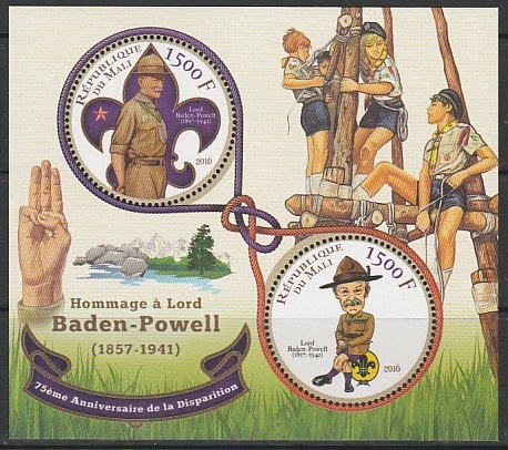 Мали 2016 год. Основатель скаутского движения Роберт Баден-Пауэлл, малый лист.
