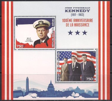 Мали 2017 год. 100 лет со дня рождения Д. Кеннеди. Лист Сувенирный выпуск