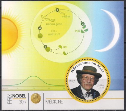 Мали 2017 год. Лауреат нобелевской премии генетик Д.Холл. Блок Сувенирный выпуск