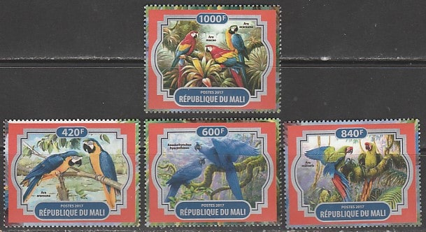 Мали 2017 год. Попугаи, 4 марки Сувенирный выпуск.
