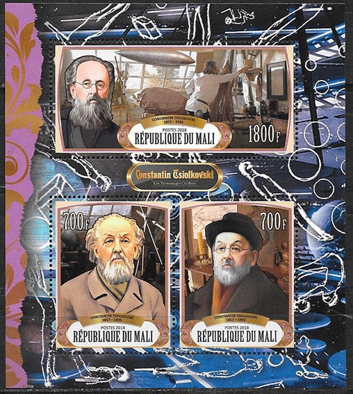 Мали 2018 год. Константин Циолковский, малый лист
