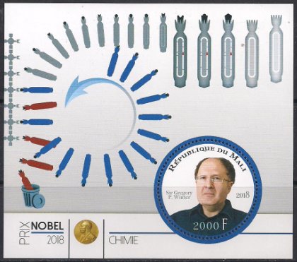 Мали 2018 год. Лауреат нобелевской премии биохимик Г. Уинтер. Блок Сувенирный выпуск