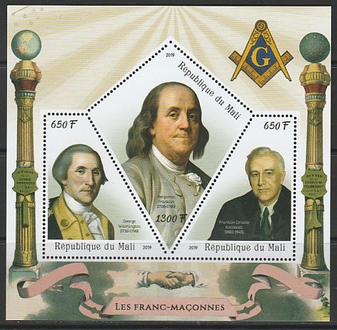 Мали 2019 год. Президенты США: Вашингтон, Франклин, Рузвельт, малый лист.