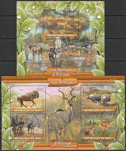 Мали 2020 год. Антилопы, малый лист + блок. Сувенирный выпуск.
