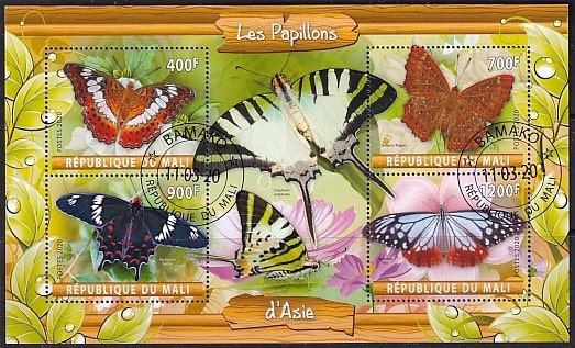 Мали 2020 год. Бабочки Азии, малый лист (гашёные)