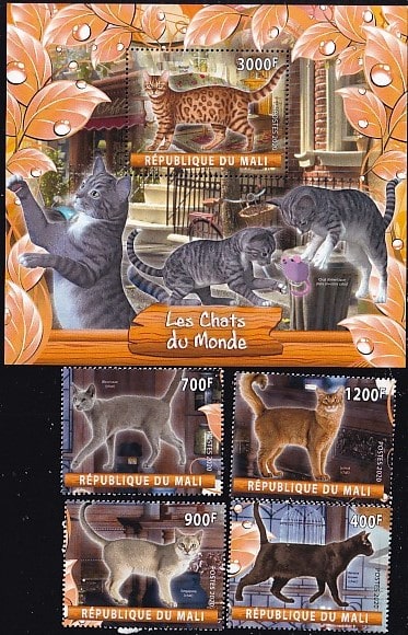 Мали 2020 год. Кошки мира - 2, блок и 4 марки