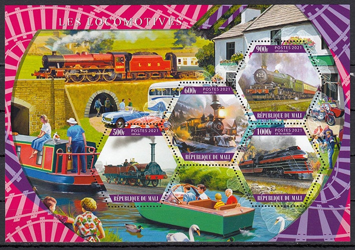 Мали 2021 год. Паровозы, малый лист