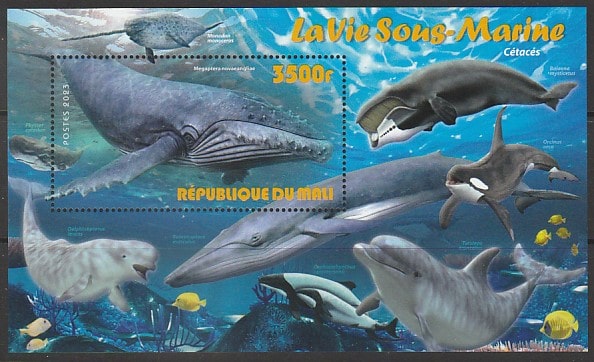 Мали 2023 год. Подводная жизнь. Китообразные, блок.