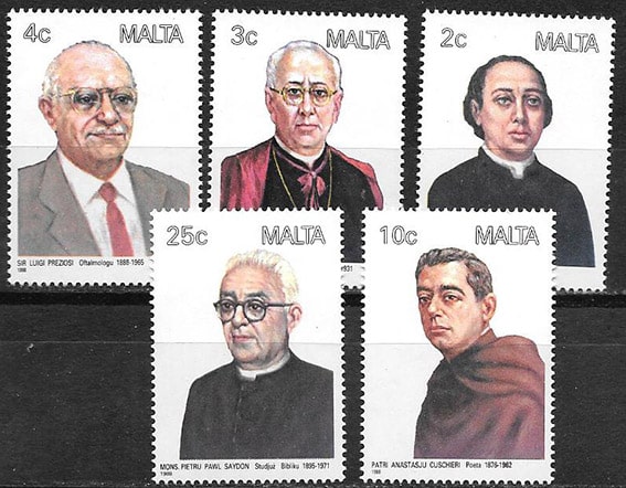 Мальта 1988 год. Выдающиеся личности, 5 марок