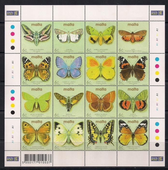 Мальта 2002 год. Бабочки. 1 малый лист.